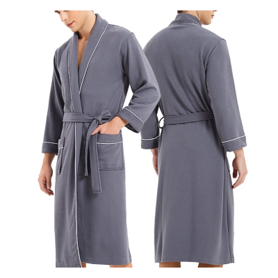 Custom Logo Linen Hotel Embroidered quilted Linen Bathrobe Ladies Hotel White Luxury unisex Waffle Cotton bathrobe