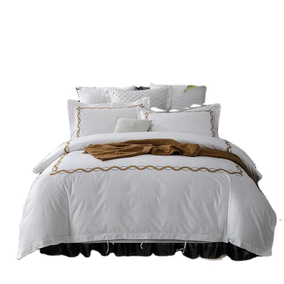 Five-Star Hotel White Stain Quilt Duvet Cover Sheets Hotel Fabrics Hotel 4PCS Bedding Cotton Modern Printed Cotton Solid color