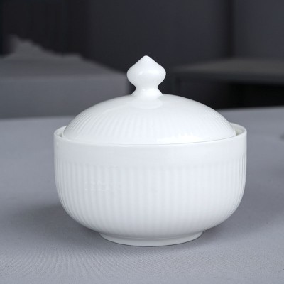 Factory price sales geometric design porcelain soup bowl ceramic gold plated hotel soup pot