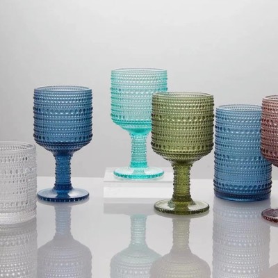 Vintage Embossed Wine Glass Crystal Beads Juice Cup Colored Glass Water Cup Liquor Cup