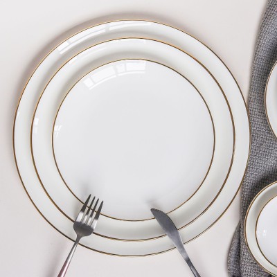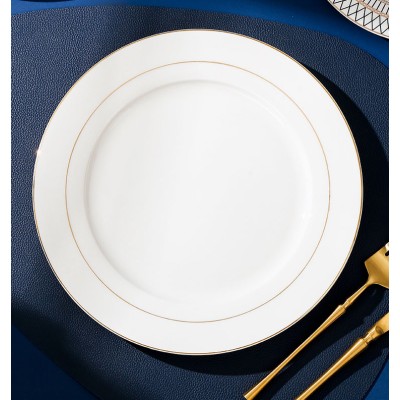 High Quality Gold-rimmed Western Dish Flat Cake Ceramic Plates for Restaurant Hotel Kitchen Tabletop