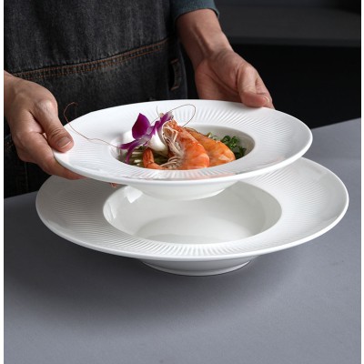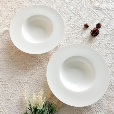 Large Size Porcelain White Soup Plate Plate Fine Porcelain Rimmed Soup Large Shallow Plate