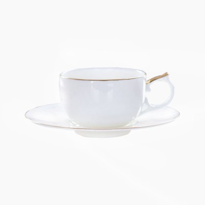Hotel Coffee Tea Set Ceramic Bone China Gold Rim Dinnerware Set Coffee Cups And Saucers