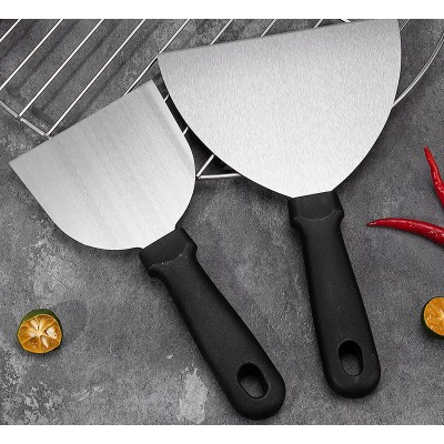 Black Handle Stainless Steel Spatula Rubber Cutter Grill Cleaning Barbecue Plate Spatula