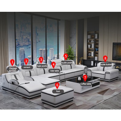 Modern living room furniture assembly L-shaped leather sofa with USB port Bluetooth sound corner sofa set