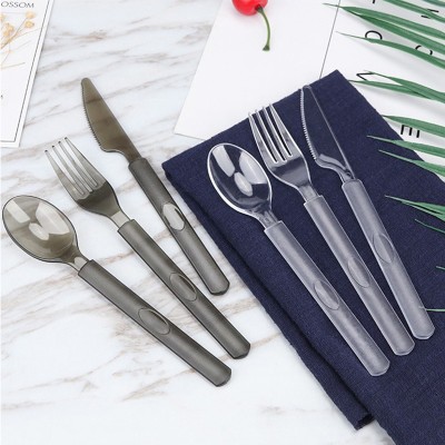 High Quality Heavy Duty Plastik Crockery Durable Ps Fork Flatware Utensils Clear Cutlery Set Clear Plastic Disposable