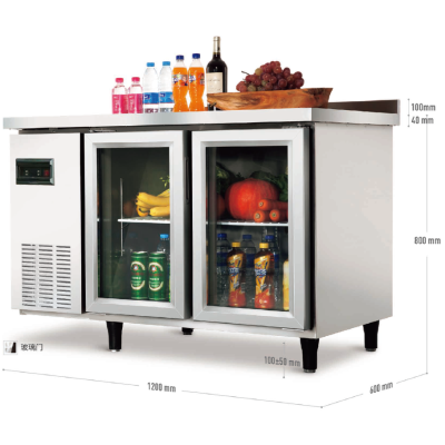 Commercial Two Door Bar Fridge Table Under Counter Refrigerator Stainless Steel Fridge with LED lighting