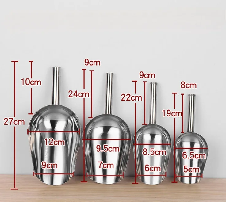 High Quality Stainless Steel Silver ice Flour Shovel Bar Ice Flour Utility Scoop Metal Popcorn Food Ice Scoop