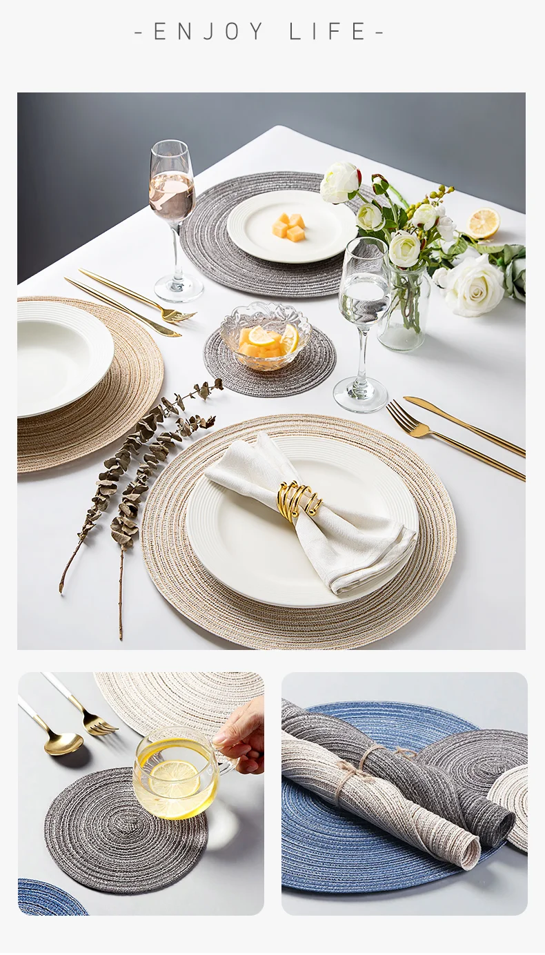 Wholesale Nordic Style Cotton Yarn Placemat Roundness Ramie Knitted Coaster Insulation Decoration Home Anti-Scalding Pad