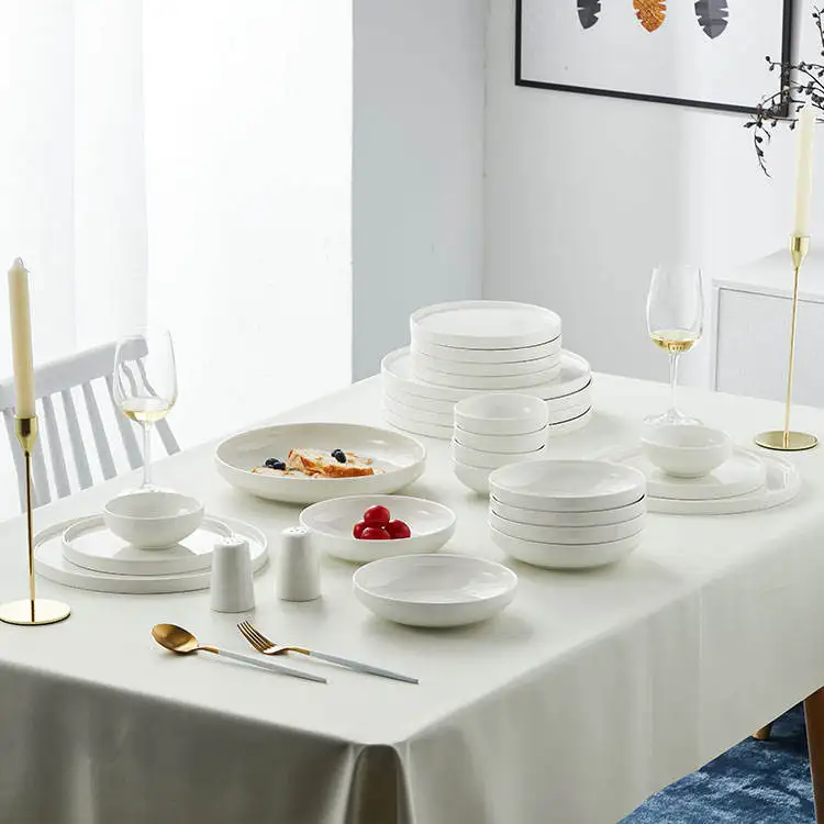 Dinnerware Set Porcelain Dinner Set Line Series Hotel White Ceramic Plate Set Porcelain Dinnerware
