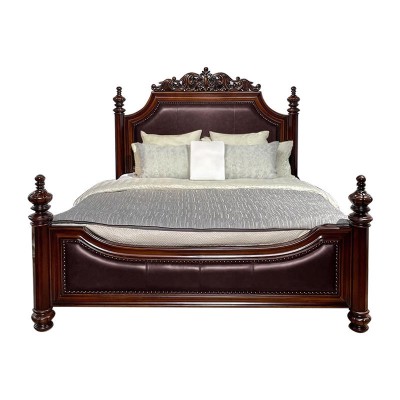 American Leather Bed Master Bedroom Queen Bed 1.8 Meters European Style Carved Palace Villa Solid Wood Bed