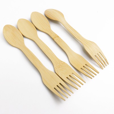 Bamboo Carbonization 17Cm Dual-Purpose Fork Spoon Western Tableware Disposable Bamboo Fork Spoon