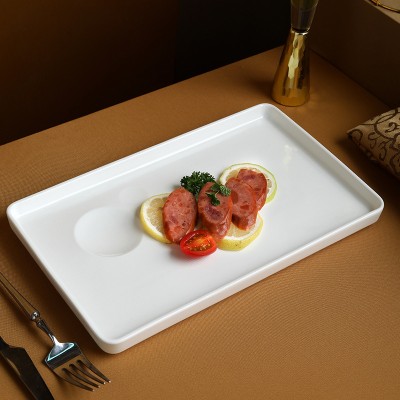 Customizable Logo Luxury White Porcelain Dinner Plate Rectangular Ceramic Plate